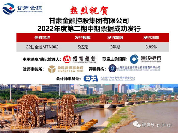 6月13日,甘肅金融控股集團(tuán)有限公司2022年第二期中期票據(jù)成功發(fā)行,募集資金5億元。