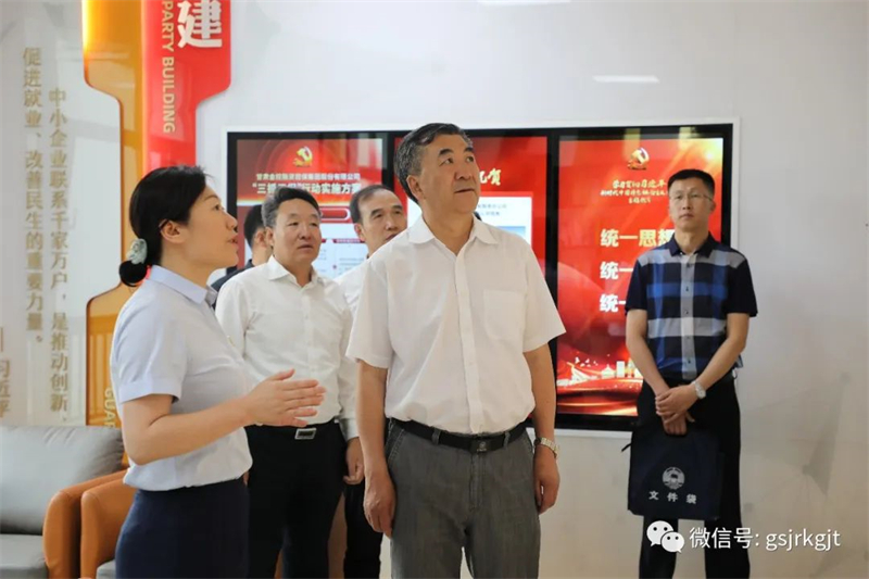 郭承錄實地觀摩了企業(yè)黨建引領(lǐng)、業(yè)務(wù)開展和文化建設(shè)工作,重點了解政府性融資擔(dān)保體系建設(shè)、風(fēng)險防范和數(shù)字化轉(zhuǎn)型等情況,并召開座談會,聽取甘肅金控集團(tuán)服務(wù)實體經(jīng)濟(jì)、深化國企改革、完善金融板塊和防范化解重點風(fēng)險等情況匯報。