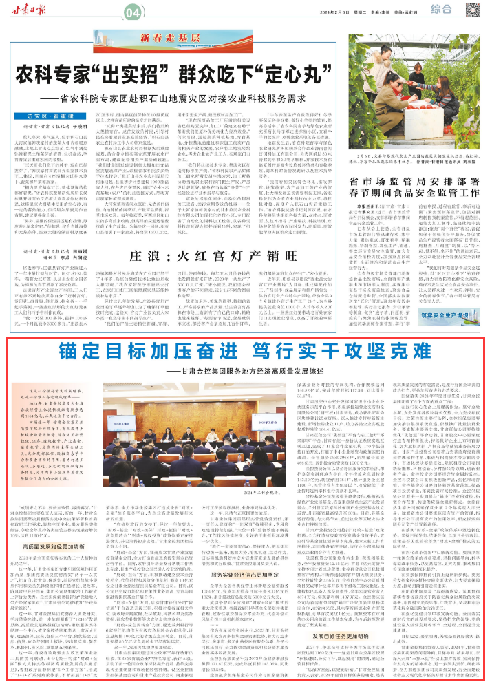 圍繞落實2024年年度目標(biāo)任務(wù),甘肅金控集團(tuán)明確了6個方面的重點工作:
