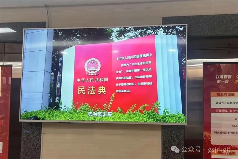 利用電子大屏幕循環(huán)播放《民法典》普法短視頻、法律條文解讀及案例動畫,以通俗易懂的方式讓民法知識“活”起來。