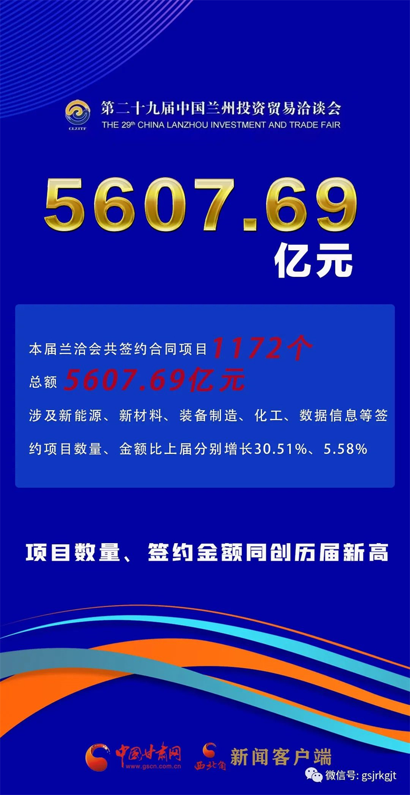 圖解丨本屆蘭洽會簽約合同項目1172個總額5607.69億元