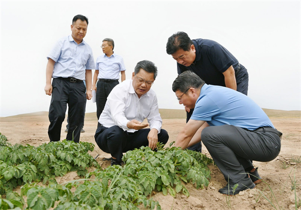 任振鶴強調(diào),要充分發(fā)揮現(xiàn)有水利工程綜合減災(zāi)作用,優(yōu)化調(diào)整供水方案,精準(zhǔn)調(diào)配抗旱水源,先生活、后生產(chǎn),先節(jié)水、后調(diào)水,先地表、后地下,優(yōu)先保障人畜飲水,努力保障農(nóng)業(yè)灌溉用水需求。要立足減損就是增產(chǎn),動員群眾開展生產(chǎn)自救,組織專家和農(nóng)技人員包片負(fù)責(zé)、服務(wù)到田,分區(qū)域、分作物、分品種拿出精準(zhǔn)、有效、科學(xué)的措施,能澆一分是一分、能保一畝是一畝,最大限度擴大灌溉面積,實現(xiàn)重災(zāi)區(qū)少減產(chǎn)、輕災(zāi)區(qū)能穩(wěn)產(chǎn)。要密切監(jiān)測天氣狀況,利用一切有利條件,大力開展人工增雨作業(yè),有效增加降水補給。要切實發(fā)揮農(nóng)業(yè)保險的災(zāi)害“減震器”作用,開辟綠色通道,簡化理賠程序,盡早兌付到位,維護群眾利益。要著眼早秋損、晚秋補,適時補種改種晚秋作物,抓住時節(jié),想方設(shè)法補歉,力爭筑牢全年糧食及農(nóng)業(yè)豐收的最后一道防線。要堅持藏糧于地、藏糧于技,加強高標(biāo)準(zhǔn)農(nóng)田建設(shè),大力推廣高效節(jié)水灌溉技術(shù),補齊農(nóng)業(yè)基礎(chǔ)設(shè)施短板,增強抵御自然災(zāi)害能力。要通過鼓勵外出務(wù)工、促進(jìn)三產(chǎn)融合拓寬農(nóng)民增收渠道,把災(zāi)情對“三農(nóng)”的影響降到最低。