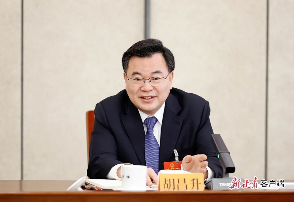 全國人大代表、甘肅省人大常委會主任、甘肅省委書記胡昌升回答記者提問。(新甘肅·甘肅日報記者孟捷 攝)