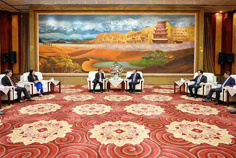 任振鶴對高泉慶一行來甘訪問表示歡迎,并簡要介紹了甘肅經(jīng)濟社會發(fā)展情況。他說,在習近平主席和新方領導人戰(zhàn)略引領下,中新關系保持良好發(fā)展勢頭,甘肅與新加坡在科技、教育、文化、醫(yī)療衛(wèi)生等方面的合作交流不斷深化,人員往來更加密切。習近平主席指出,甘肅最大的機遇在于“一帶一路”。隨著高質(zhì)量共建“一帶一路”、西部陸海新通道建設、新時代西部大開發(fā)、黃河流域生態(tài)保護和高質(zhì)量發(fā)展等深入實施和《區(qū)域全面經(jīng)濟伙伴關系協(xié)定》的全面生效,甘肅歷史文化、資源稟賦、科教人才、工業(yè)基礎、地理區(qū)位的組合優(yōu)勢正在加速釋放,也為雙方提供了更大市場、更多需求、更深層次的合作空間。新加坡中華總商會是新加坡歷史最悠久的重要商團,在國際商業(yè)舞臺上享有盛譽。希望商會充分發(fā)揮橋梁紐帶作用,更多宣傳甘肅、推介甘肅,推動甘肅與新加坡各領域合作再上新臺階。我們將持續(xù)營造市場化、法治化、國際化一流營商環(huán)境,為企業(yè)提供優(yōu)質(zhì)高效的服務,讓大家投資在甘肅、滿意在甘肅、收獲在甘肅。