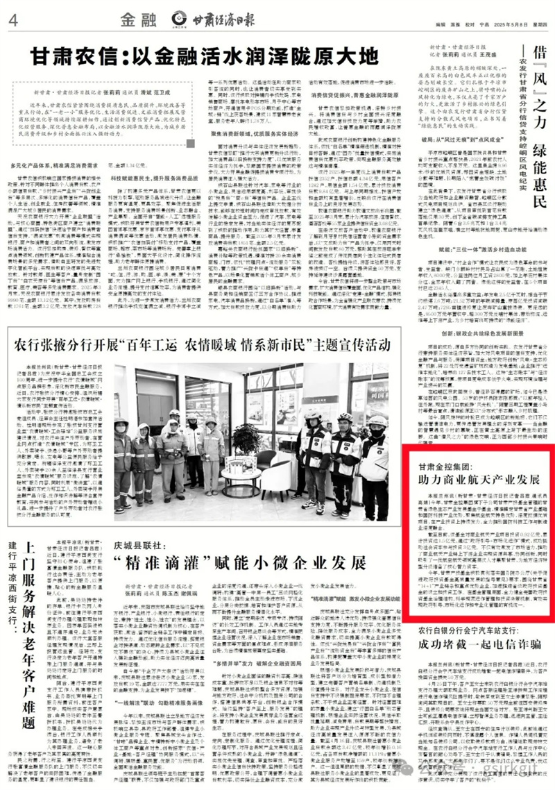 媒體關注 | 甘肅金控集團:助力商業(yè)航天產(chǎn)業(yè)發(fā)展