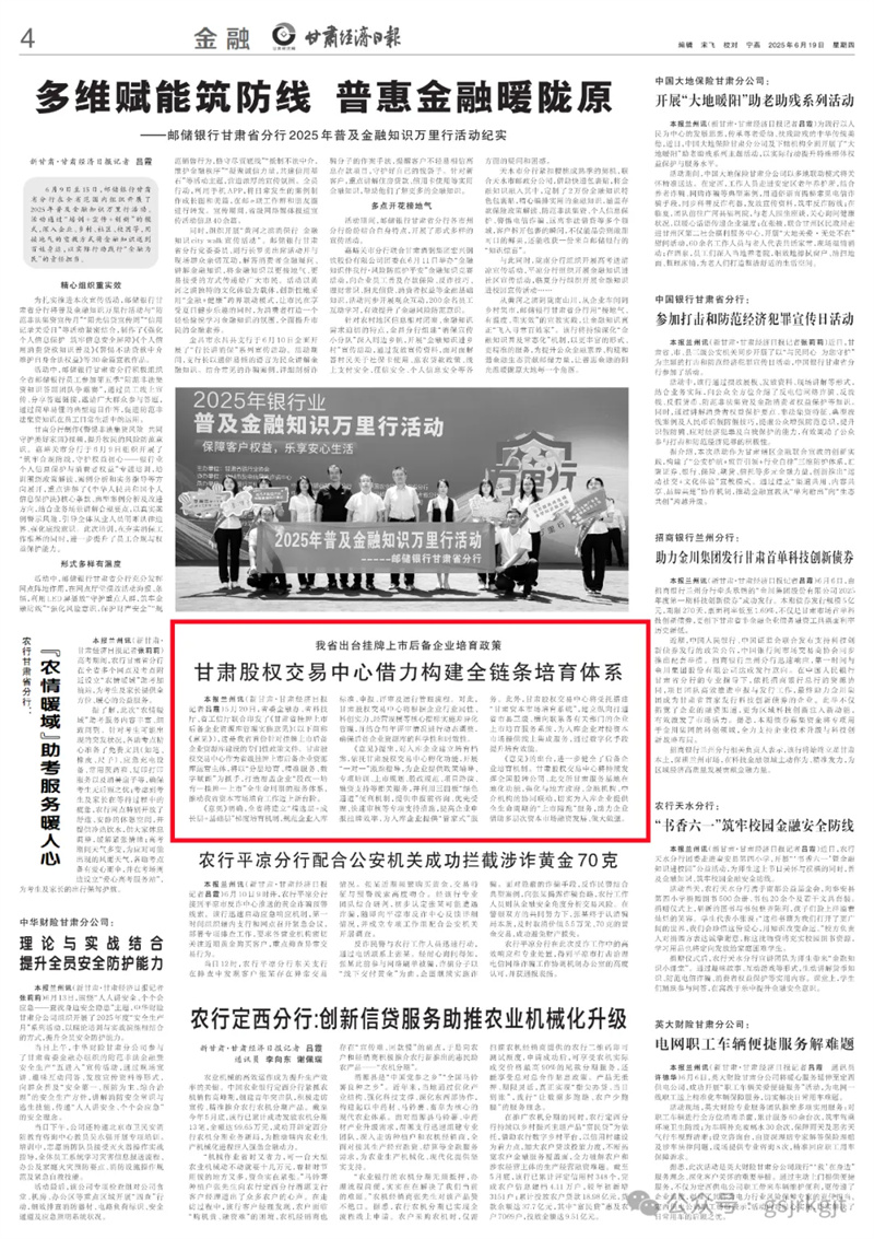 媒體關(guān)注 | 我省出臺(tái)掛牌上市后備企業(yè)培育政策 甘肅股權(quán)交易中心借力構(gòu)建全鏈條培育體系