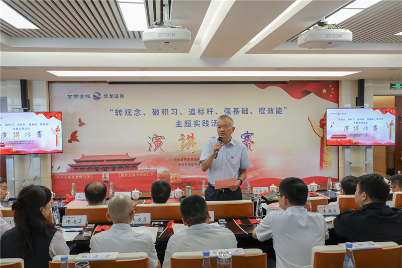 金控集團(tuán)黨委書記、董事長,華龍證券黨委書記、董事長陳牧原致辭,指出在這個特殊的日子里,我們開展主題黨日活動和演講比賽,恭賀中國共產(chǎn)黨成立99周年,意義重大。同時強(qiáng)調(diào),集團(tuán)黨委針對經(jīng)營管理中顯現(xiàn)的一些問題,在全系統(tǒng)開展“轉(zhuǎn)觀念、破積習(xí)、追標(biāo)桿、強(qiáng)基礎(chǔ)、提效能”主題實(shí)踐活動,倡導(dǎo)廣大員工以自我革新的勇氣,破除企業(yè)行政化、機(jī)關(guān)化的積習(xí)陋習(xí),樹牢市場經(jīng)營觀念,對照標(biāo)桿,俯身抬頭干實(shí)事,提高效能強(qiáng)執(zhí)行,勇于進(jìn)取,奮勇爭先,創(chuàng)造更好的業(yè)績,為黨旗添彩,為黨的生日獻(xiàn)禮。