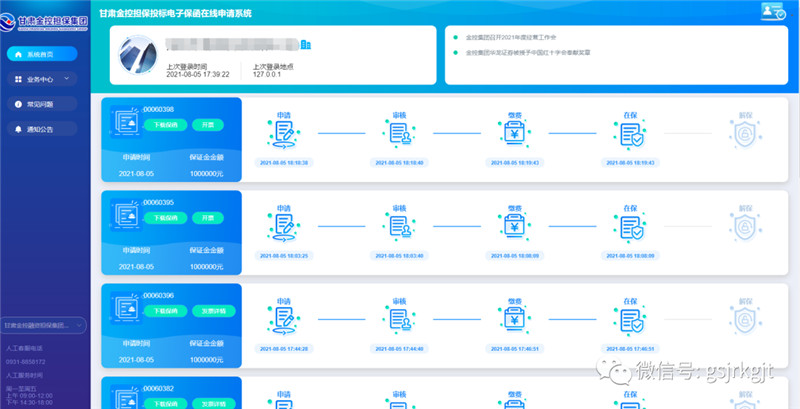近日,金控?fù)?dān)保電子投標(biāo)保函系統(tǒng)在臨夏公共資源交易中心首發(fā)試點上線,金控臨夏擔(dān)保當(dāng)日開出第一單電子投標(biāo)保函。截至8月9日,在線開具電子投標(biāo)保函共19筆、金額275萬元,實現(xiàn)了1分鐘線上保函開具,做到了“數(shù)據(jù)多跑腿、群眾不跑路”。