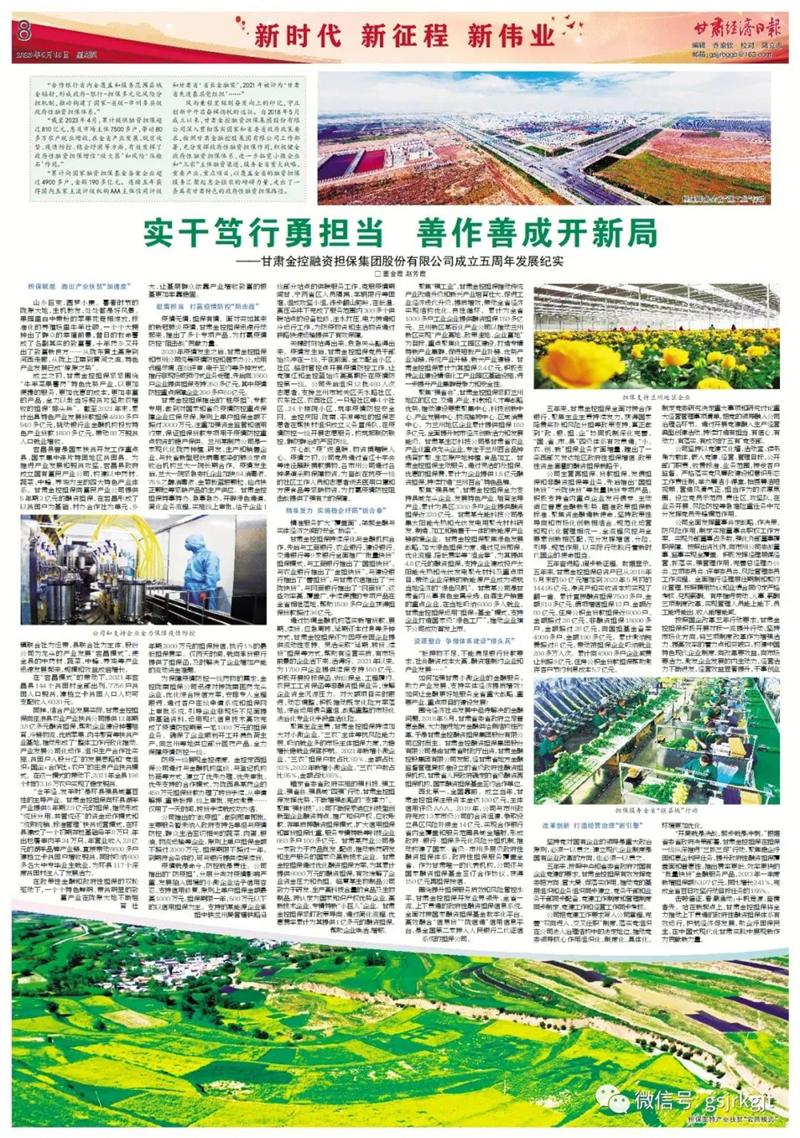 實(shí)干篤行勇?lián)?dāng) 善作善成開新局——甘肅金控融資擔(dān)保集團(tuán)股份有限公司成立五周年發(fā)展紀(jì)實(shí)