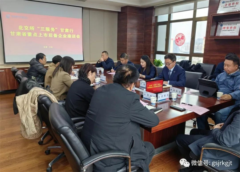 在重點(diǎn)上市后備企業(yè)座談會(huì)上,省金融監(jiān)管局金融三處副處長蓋瀚琳、北交所西北基地副首席代表潘振華及甘肅股權(quán)交易中心總經(jīng)理郭曉偉與8家參會(huì)企業(yè)就經(jīng)營情況、上市進(jìn)展和當(dāng)前困難等進(jìn)行了交流,并結(jié)合企業(yè)經(jīng)營特點(diǎn)和資本市場規(guī)劃,共同探討了上市路徑選擇、上市時(shí)間規(guī)劃及扶持獎(jiǎng)補(bǔ)政策利用等方面的問題,力促企業(yè)高質(zhì)量發(fā)展,打好上市基礎(chǔ)。
